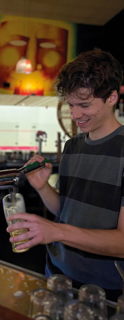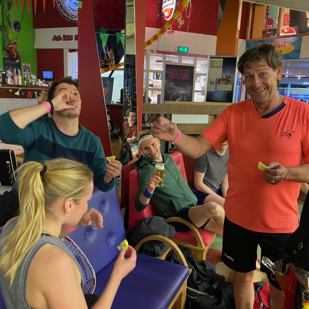 Alle squashbanen liggen om de centraal gelegen bar. Hier kunnen onze gasten verschillende drankjes krijgen van sportdrank, frisdrank, wijn, bier en meer